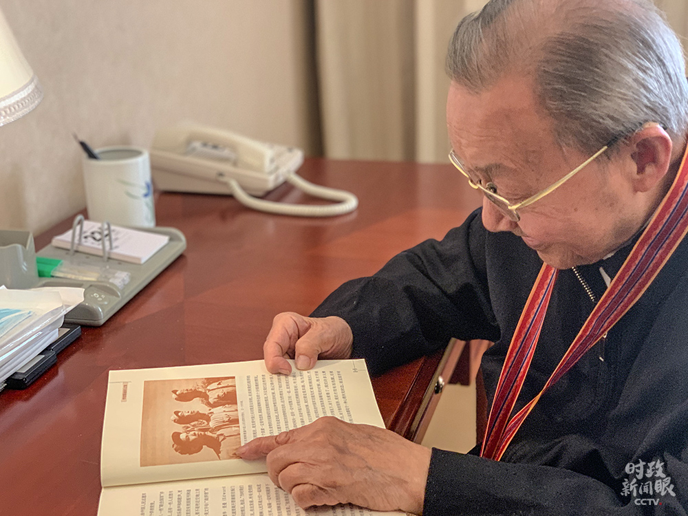 △當天出席大會的曾建徽,曾在抗美援朝期間赴朝鮮采訪。這是他正在翻閱當年的通訊文稿。(總臺央視記者盧心雨拍攝)