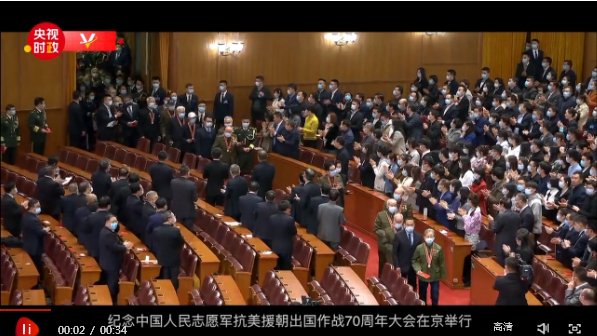 23日,大會(huì)開幕前的一個(gè)“畫面”讓很多人淚目:志愿軍老戰(zhàn)士、老同志入場,現(xiàn)場全體起立并鼓掌,在入場的十多分鐘期間,掌聲一直在持續(xù)。