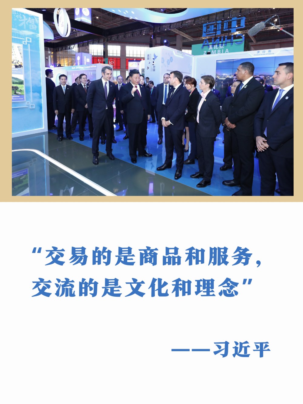 展廳里展品各具特色。習(xí)主席同外方領(lǐng)導(dǎo)人邊走邊看,不時(shí)駐足體驗(yàn),留下一個(gè)個(gè)經(jīng)典瞬間,成為中國(guó)與世界開(kāi)放合作、共享未來(lái)的生動(dòng)見(jiàn)證——