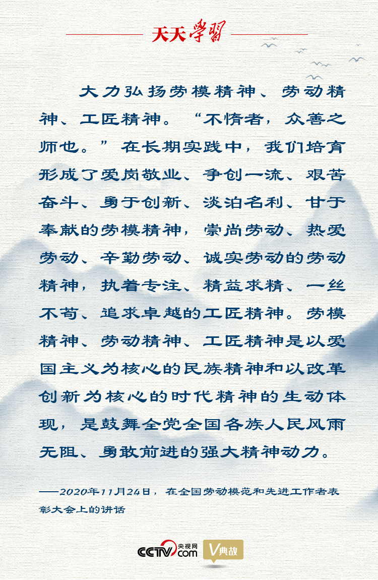 天天學(xué)習(xí)“社會(huì)主義是干出來(lái)的,新時(shí)代是奮斗出來(lái)的。”“光榮屬于勞動(dòng)者,幸福屬于勞動(dòng)者。”11月24日,習(xí)近平總書記在全國(guó)勞動(dòng)模范和先進(jìn)工作者表彰大會(huì)上發(fā)表重要講話,贊揚(yáng)勞動(dòng)模范是民族的精英、人民的楷模,是共和國(guó)的功臣,號(hào)召全黨全國(guó)各族人民大力弘揚(yáng)勞模精神、勞動(dòng)精神、工匠精神,努力在全面建設(shè)社會(huì)主義現(xiàn)代化國(guó)家新征程上創(chuàng)造新的時(shí)代輝煌、鑄就新的歷史偉業(yè)!