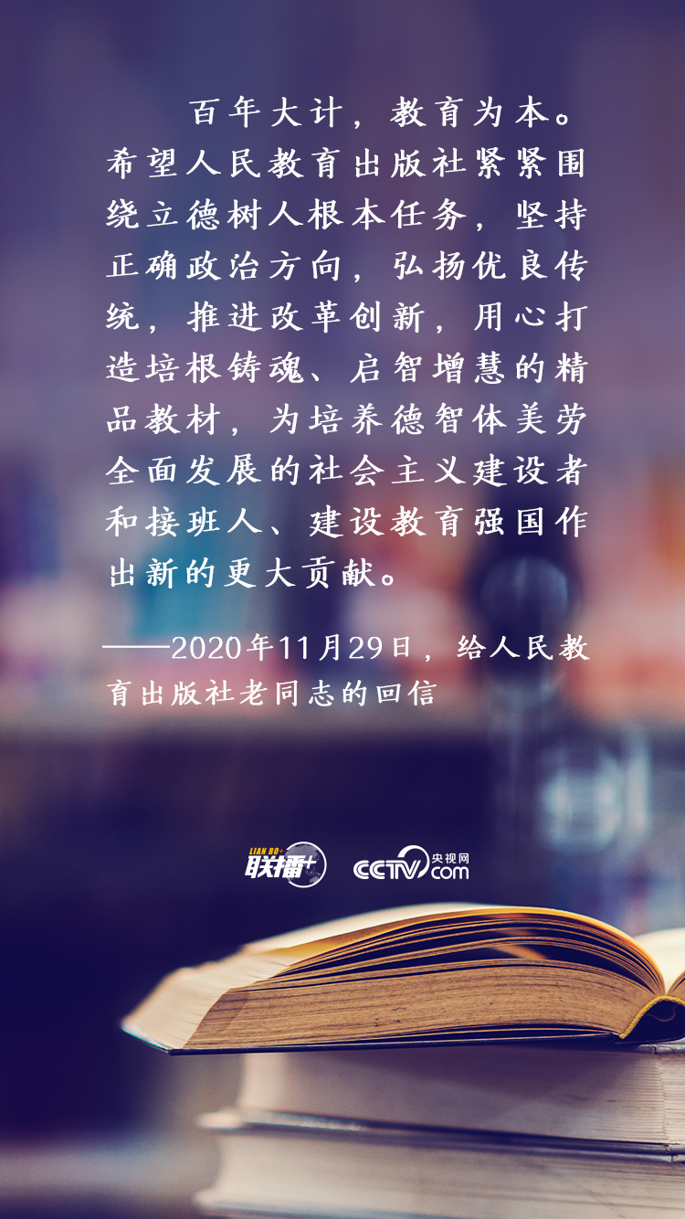 百年大計,教育為本。習近平總書記一貫高度重視培養(yǎng)社會主義建設者和接班人,不止一次對教材編研出版工作提出殷切期望。央視網(wǎng)《聯(lián)播+》為您梳理總書記有關精彩論述,與您一起學習領悟。