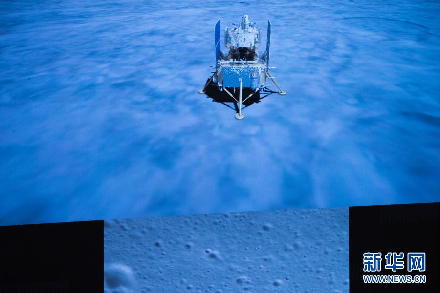 2020年12月1日23時(shí)11分,嫦娥五號探測器成功著陸在月球正面西經(jīng)51.8度、北緯43.1度附近的預(yù)選著陸區(qū),并傳回著陸影像圖。這是在北京航天飛行控制中心拍攝的嫦娥五號探測器落月瞬間。新華社記者 金立旺 攝