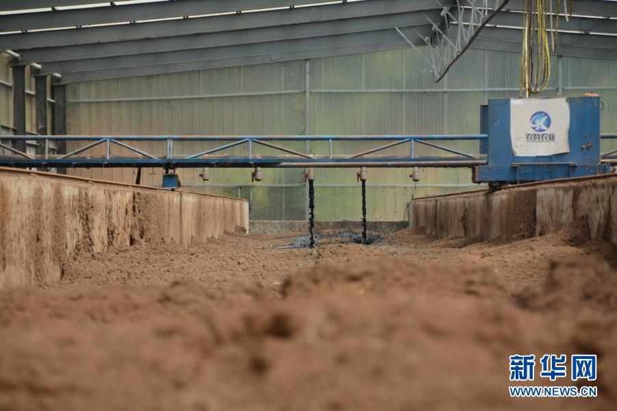 在福建省福清市永誠華多種豬公司豬場內(nèi),半自動化機(jī)械將收集的養(yǎng)殖糞污噴灑至墊料上。這是福建首創(chuàng)的“異位發(fā)酵床”技術(shù),發(fā)酵后的糞污可以作為有機(jī)肥源,并可以讓養(yǎng)殖場實(shí)現(xiàn)污染“零排放”(2019年8月12日攝)。新華社記者 林超 攝