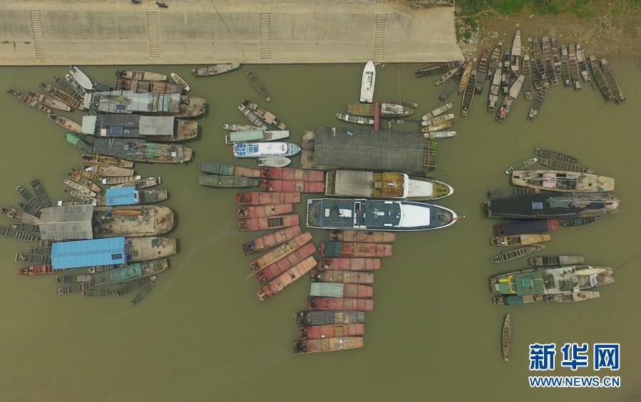 在湖南常德漢壽縣蔣家嘴鎮(zhèn),待回收的鐵漁船??吭诙赐ズ叄?019年12月17日攝,無人機(jī)照片)。2020年1月1日零時(shí)起,長江流域332個(gè)自然保護(hù)區(qū)和水產(chǎn)種質(zhì)資源保護(hù)區(qū)全面禁止生產(chǎn)性捕撈。新華社記者 薛宇舸 攝