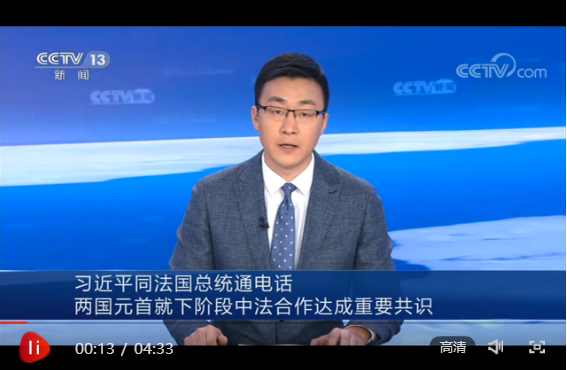 央視網(wǎng)消息:國家主席習(xí)近平12月9日晚同法國總統(tǒng)馬克龍通電話。