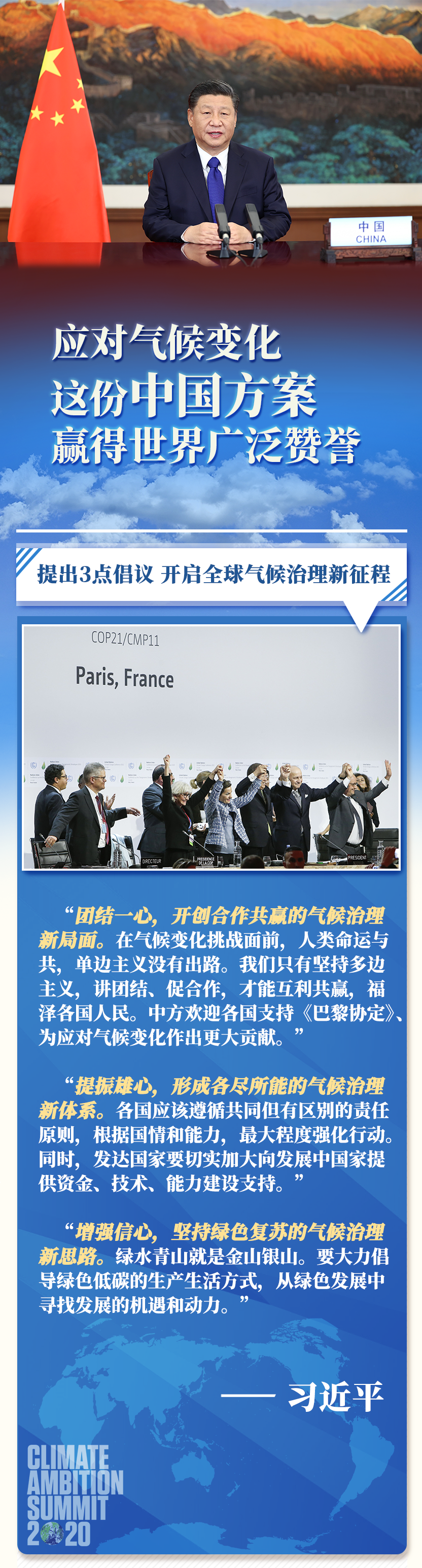 12月12日,習(xí)近平主席在氣候雄心峰會(huì)上通過(guò)視頻發(fā)表題為《繼往開(kāi)來(lái),開(kāi)啟全球應(yīng)對(duì)氣候變化新征程》的重要講話,闡釋應(yīng)對(duì)氣候變化的中國(guó)主張,宣布中國(guó)國(guó)家自主貢獻(xiàn)最新舉措。