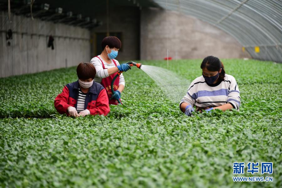 河北曲周縣一家育苗產(chǎn)業(yè)基地的工人在育苗溫棚內(nèi)工作(5月4日攝)。曲周縣積極拓寬產(chǎn)業(yè)扶貧渠道,發(fā)揮當(dāng)?shù)禺a(chǎn)業(yè)優(yōu)勢,統(tǒng)籌協(xié)調(diào)貧困戶利用扶貧資金入股現(xiàn)代設(shè)施農(nóng)業(yè)基地,帶動群眾脫貧增收。新華社記者 朱旭東 攝