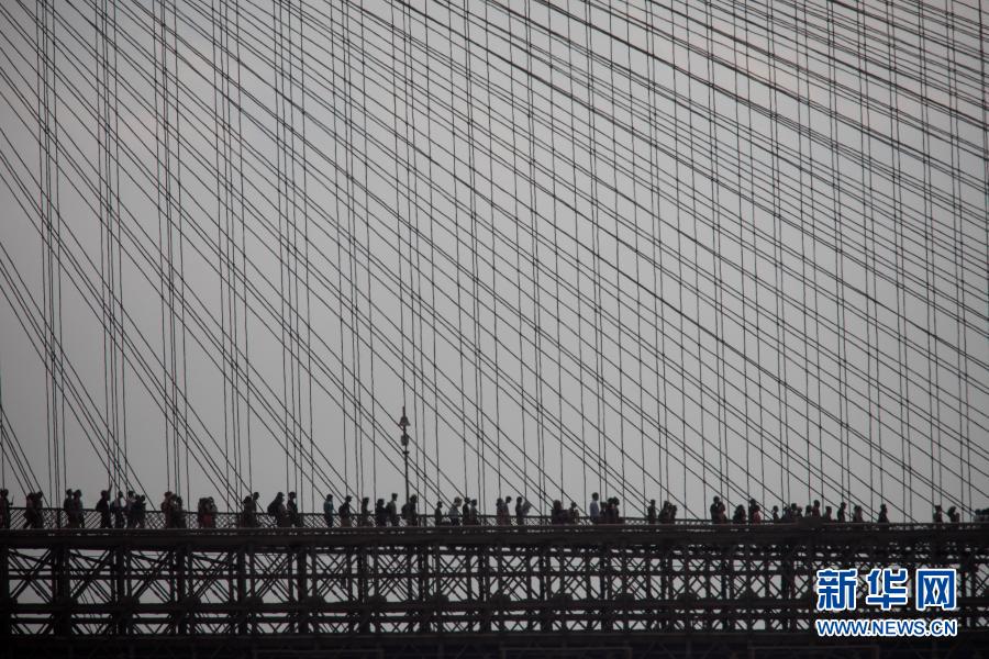 6月6日,抗議警察暴力執(zhí)法導致喬治·弗洛伊德死亡的示威人群走過美國紐約布魯克林大橋。新華社發(fā)(郭克攝)