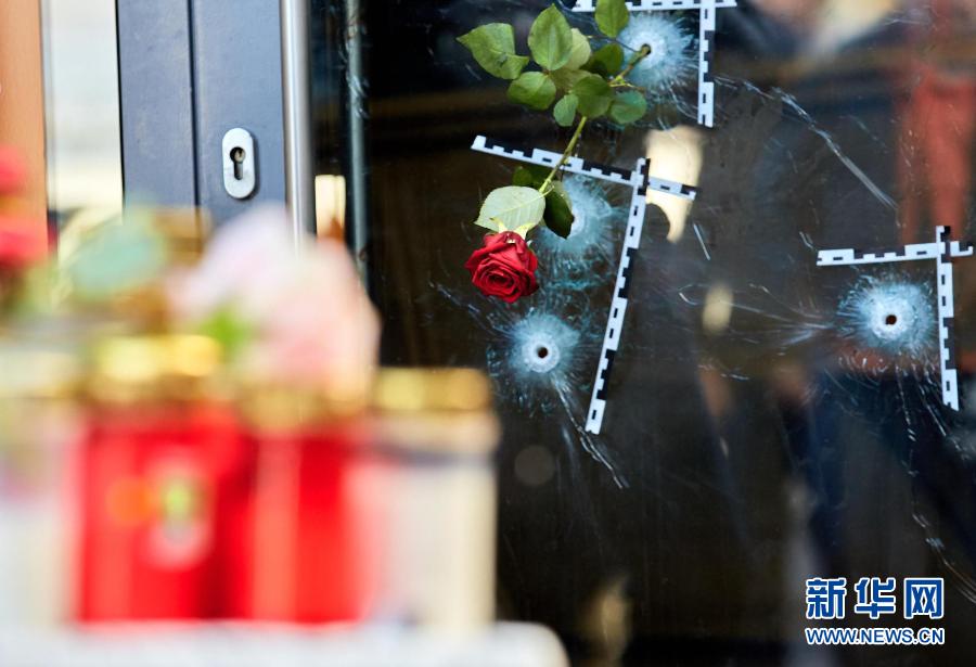 11月5日,奧地利維也納的槍擊事件現(xiàn)場放置著悼念遇難者的鮮花和蠟燭。2日晚發(fā)生的槍擊事件造成多人傷亡。奧總理庫爾茨譴責這起事件是“卑劣的恐怖襲擊”。新華社發(fā)(喬治斯·施耐德攝)
