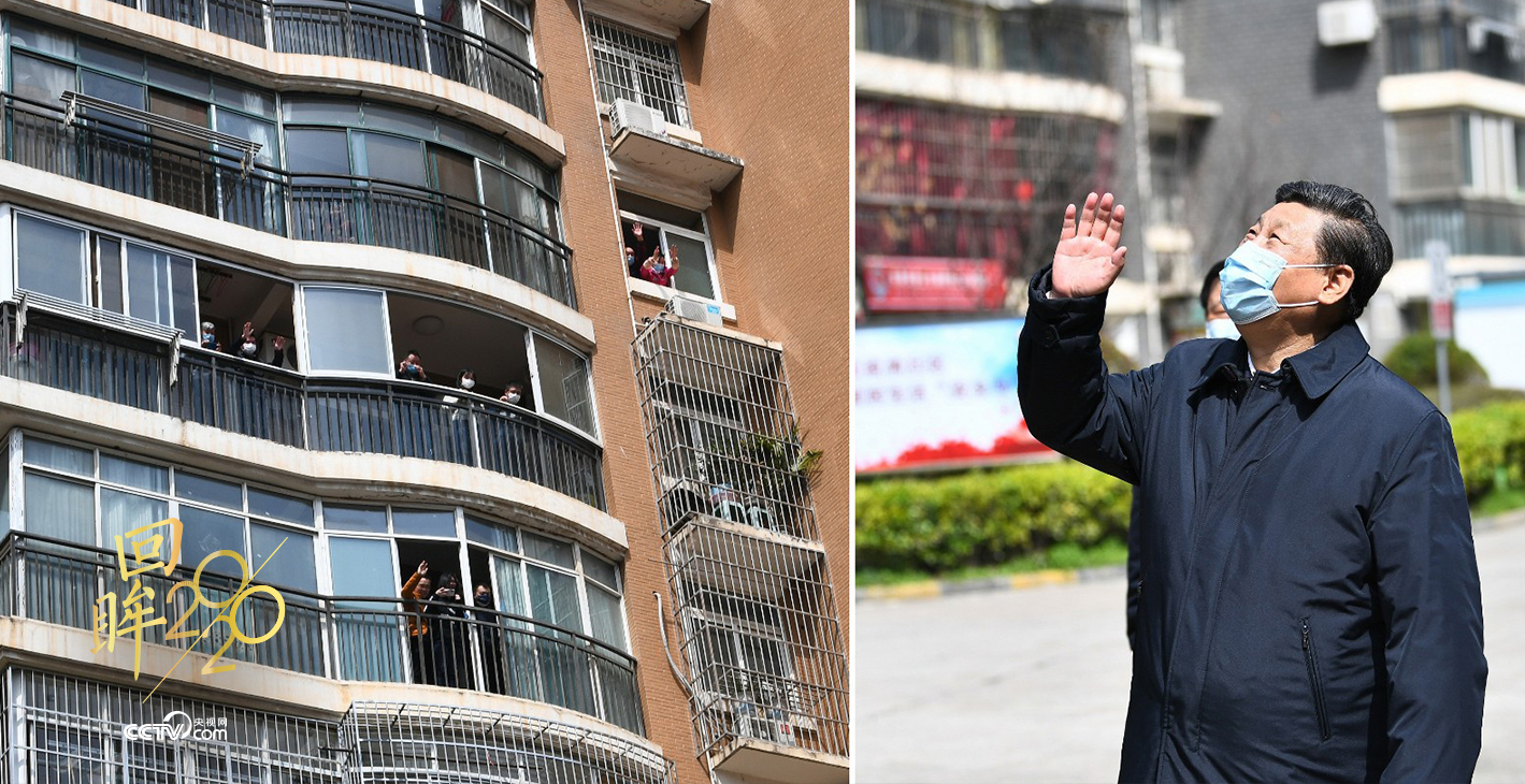 樓上,居家隔離的群眾望向窗外,有的搖著國旗高呼:“中國加油!武漢加油!”樓下,習近平總書記不時駐足,微笑著向大家揮手致意:“大家一起加油,再堅持一下!”目光中飽含關切。