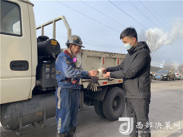 寒風(fēng)阻擋不住一心為職工送溫暖的熱情,該支部黨員志愿者冒著嚴(yán)寒,為地面室外下料職工送上了一雙雙厚實(shí)保暖的手套、暖心的奶茶,囑咐他們注意保暖,預(yù)防感冒,特殊天氣更要提高防護(hù)意識(shí),確保安全生產(chǎn)。