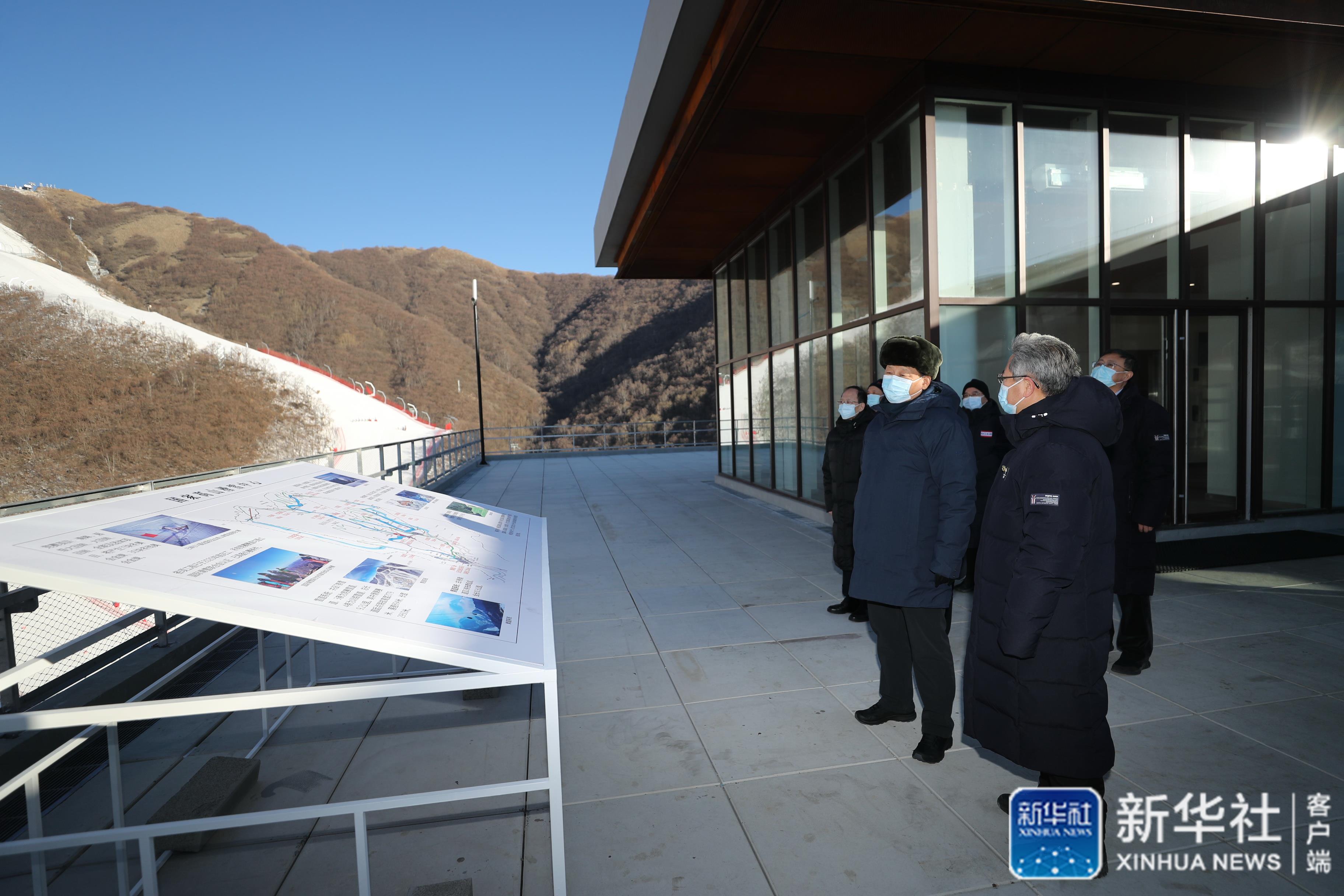 ↑1月18日至20日,中共中央總書記、國家主席、中央軍委主席習(xí)近平在北京、河北考察,并主持召開北京2022年冬奧會和冬殘奧會籌辦工作匯報會。這是18日下午,習(xí)近平在位于北京市延慶區(qū)的國家高山滑雪中心,了解高山雪道建設(shè)情況。新華社記者 鞠鵬 攝