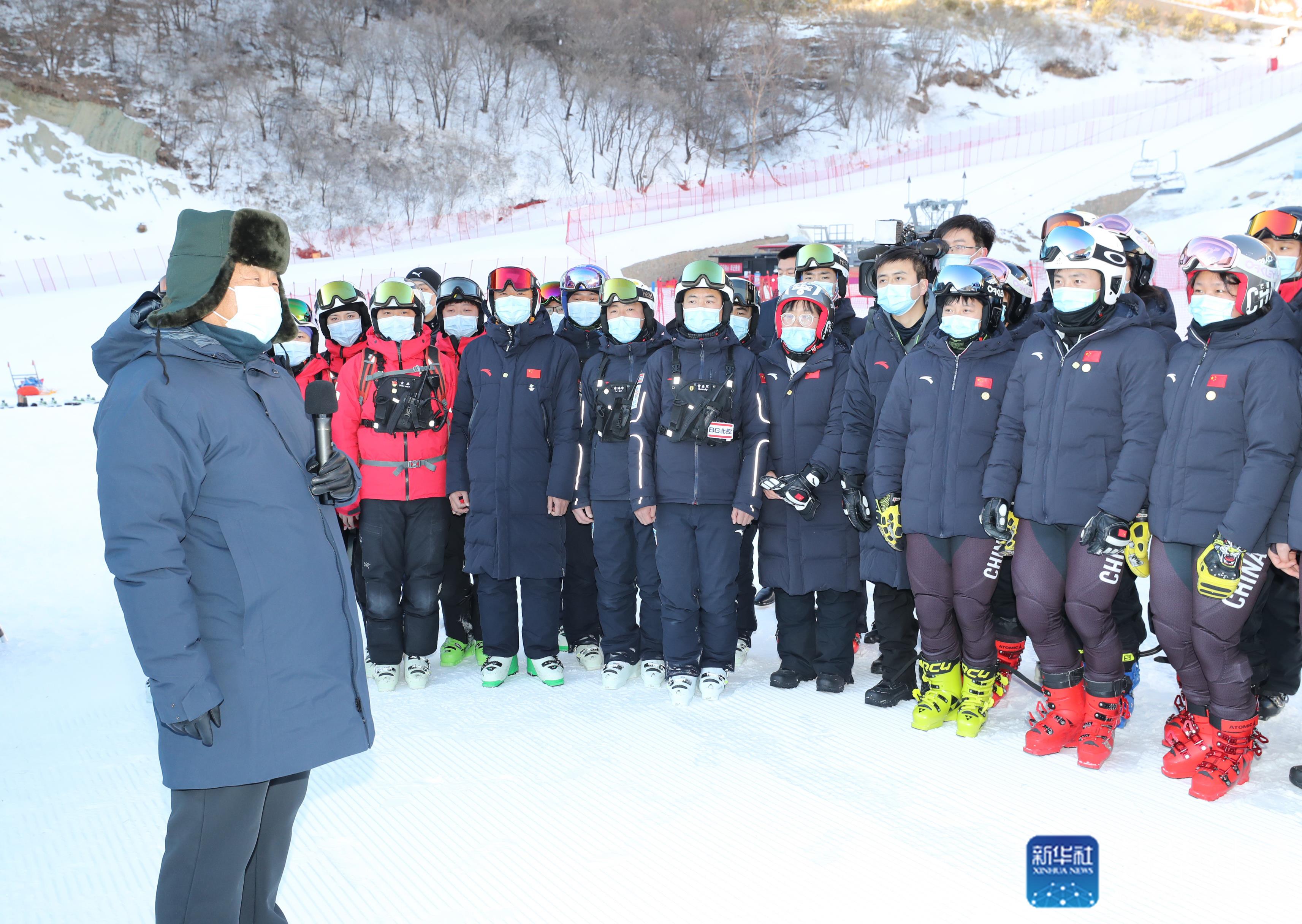 ↑1月18日至20日,中共中央總書記、國家主席、中央軍委主席習(xí)近平在北京、河北考察,并主持召開北京2022年冬奧會和冬殘奧會籌辦工作匯報會。這是18日下午,習(xí)近平在位于北京市延慶區(qū)的國家高山滑雪中心,同賽場保障工作人員、運動員、教練員等親切交流。新華社記者 鞠鵬 攝