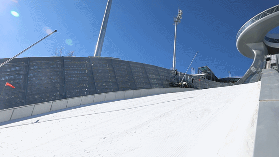 △近距離感受跳臺滑雪運動的沖擊力(總臺央視記者魏子鈞拍攝)