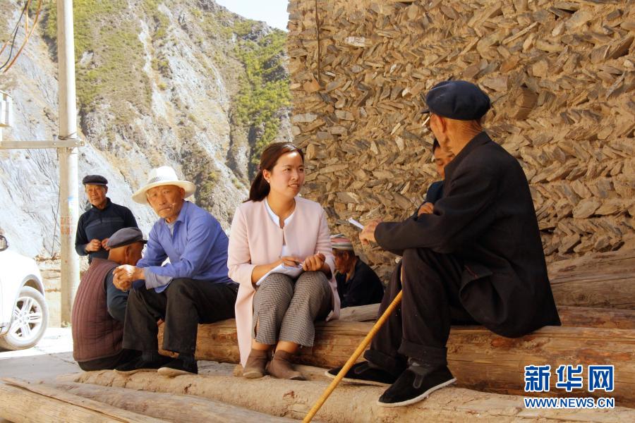 甘肅省甘南藏族自治州舟曲縣扶貧辦副主任張小娟(右二)在下鄉(xiāng)時(shí)向群眾了解情況(2018年4月攝)。2019年10月7日,時(shí)任縣扶貧辦副主任的張小娟在完成曲告納鎮(zhèn)上大年村脫貧攻堅(jiān)縣級(jí)抽樣調(diào)查工作后,返程途中所乘車(chē)輛不慎墜江,因公殉職。新華社發(fā)