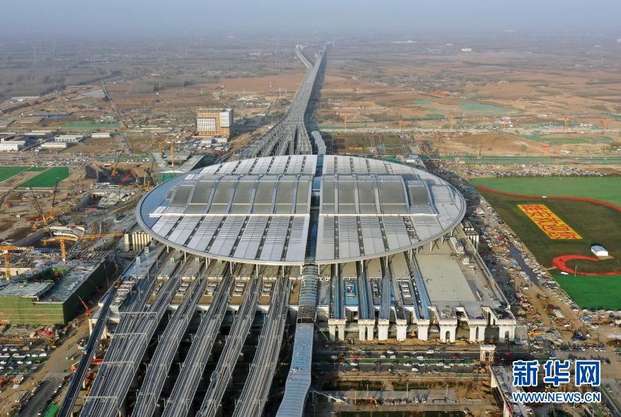 這是2020年12月23日拍攝的京雄城際鐵路雄安站(無人機照片)。新華社記者 牟宇 攝