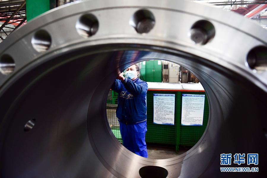 2020年2月10日,沈陽鼓風機集團股份有限公司工人在生產(chǎn)線上工作。新華社發(fā)(沈鼓集團提供)