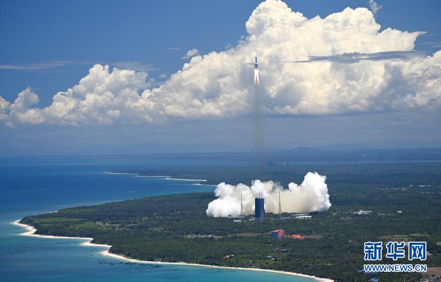 2020年7月23日12時41分,我國在海南島東北海岸中國文昌航天發(fā)射場,用長征五號遙四運載火箭將我國首次火星探測任務“天問一號”探測器發(fā)射升空。新華社記者 郭程 攝