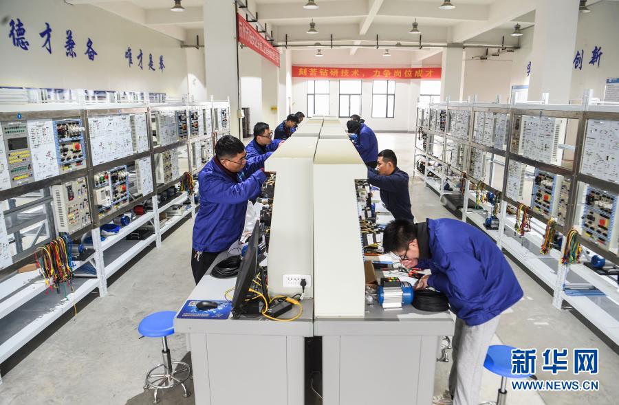 2020年12月6日,浙江省杭州市臨安區(qū)總工會組織的“工匠杯”電工技能大賽舉行。這是技術工人在參加電工技能比賽。新華社記者 徐昱 攝