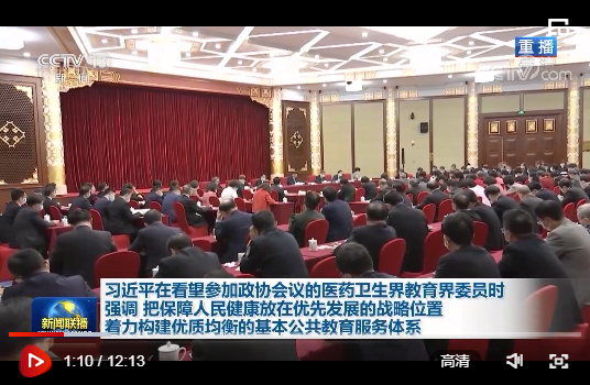 中共中央總書(shū)記、國(guó)家主席、中央軍委主席習(xí)近平3月6日下午看望了參加全國(guó)政協(xié)十三屆四次會(huì)議的醫(yī)藥衛(wèi)生界、教育界委員,并參加聯(lián)組會(huì),聽(tīng)取意見(jiàn)和建議。他強(qiáng)調(diào),要把保障人民健康放在優(yōu)先發(fā)展的戰(zhàn)略位置,堅(jiān)持基本醫(yī)療衛(wèi)生事業(yè)的公益性,聚焦影響人民健康的重大疾病和主要問(wèn)題,加快實(shí)施健康中國(guó)行動(dòng),織牢國(guó)家公共衛(wèi)生防護(hù)網(wǎng),推動(dòng)公立醫(yī)院高質(zhì)量發(fā)展,為人民提供全方位全周期健康服務(wù)。要全面貫徹黨的教育方針,堅(jiān)持社會(huì)主義辦學(xué)方向,堅(jiān)持教育公益性原則,著力構(gòu)建優(yōu)質(zhì)均衡的基本公共教育服務(wù)體系,建設(shè)高質(zhì)量教育體系,辦好人民滿意的教育,培養(yǎng)德智體美勞全面發(fā)展的社會(huì)主義建設(shè)者和接班人。