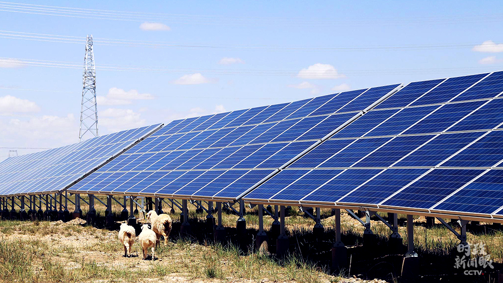 △這是位于青海省海南藏族自治州的塔拉灘光伏產(chǎn)業(yè)園區(qū)。在光伏板的“庇護(hù)”下,草場逐漸恢復(fù),羊群也回來了,經(jīng)濟和生態(tài)效益雙豐收。