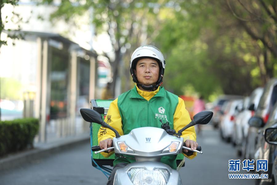美團(tuán)買(mǎi)菜駐站配送員李海剛在給附近居民區(qū)送菜途中 (資料照片)。新華社發(fā)
