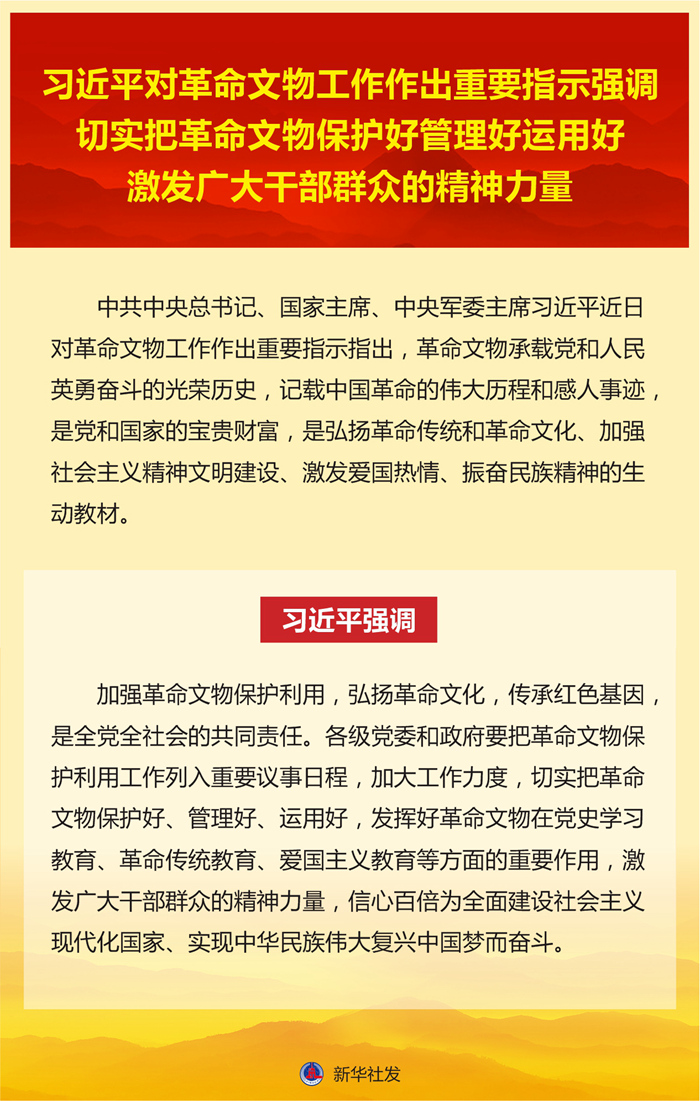 習(xí)近平對(duì)革命文物工作作出重要指示強(qiáng)調(diào) 切實(shí)把革命文物保護(hù)好管理好運(yùn)用好 激發(fā)廣大干部群眾的精神力量