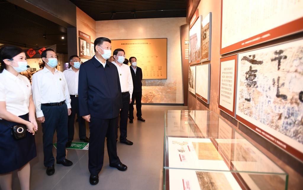 2020年9月16日,習近平在郴州市汝城縣文明瑤族鄉(xiāng)沙洲瑤族村“半條被子的溫暖”專題陳列館,了解當?shù)亻_展紅色教育情況。(新華社記者 謝環(huán)馳 攝)