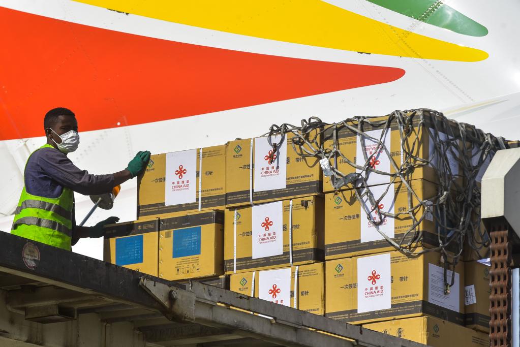 3月30日,工作人員在埃塞俄比亞亞的斯亞貝巴博萊國際機(jī)場卸載中國政府援助的疫苗。