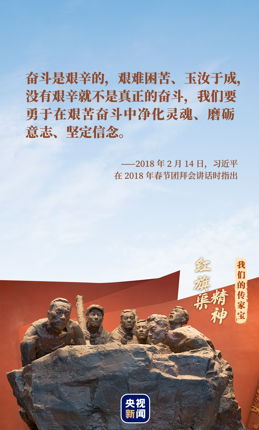 歷久彌新的紅旗渠精神鐫刻在每一塊太行山石上,融入每一滴紅旗渠水中。這面精神旗幟,匯聚起強大的正能量,激勵著中國人民在追夢路上奮勇前行。