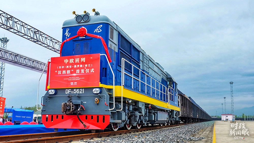 △2021年3月31日,首列43車滿載1100余噸食品、精密儀器、日用百貨等出口商品的集裝箱,搭乘中歐班列“漢西歐”列車從漢中出發(fā),最終抵達(dá)鹿特丹及莫斯科。(圖/視覺中國)