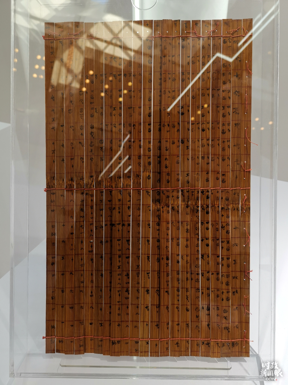 △清華大學(xué)藏戰(zhàn)國(guó)竹簡(jiǎn)《算表》,在2017年經(jīng)吉尼斯世界紀(jì)錄獨(dú)立核實(shí)認(rèn)證,是目前發(fā)現(xiàn)的人類最早的十進(jìn)制計(jì)算工具。(總臺(tái)央視記者魏建拍攝)