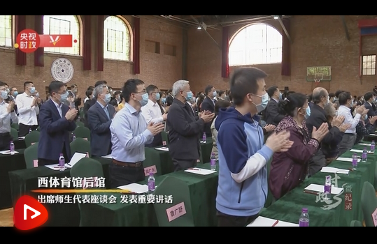 在西體育館后館,習(xí)近平總書(shū)記出席師生代表座談會(huì),發(fā)表重要講話。他強(qiáng)調(diào)堅(jiān)持中國(guó)特色世界一流大學(xué)建設(shè)目標(biāo)方向,為服務(wù)國(guó)家富強(qiáng)、民族復(fù)興、人民幸福貢獻(xiàn)力量。