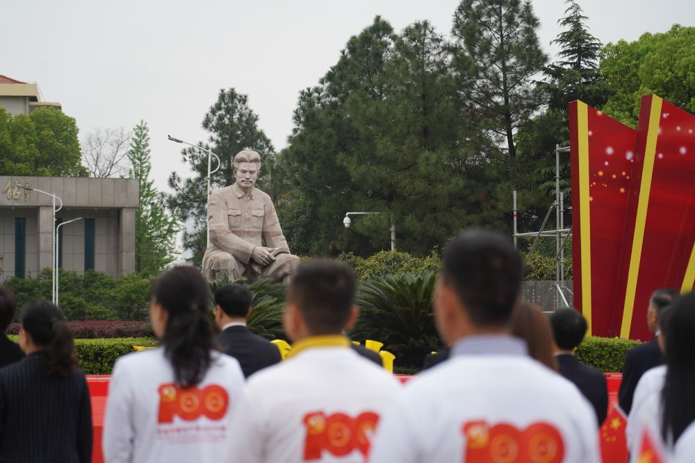 ↑2021年4月2日,人們在江西省南昌市方志敏廣場參加紀念活動,緬懷先烈,開展黨史學習教育。