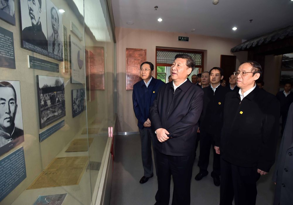 ↑2016年4月24日,習近平在安徽六安市金寨縣參觀金寨縣革命博物館。