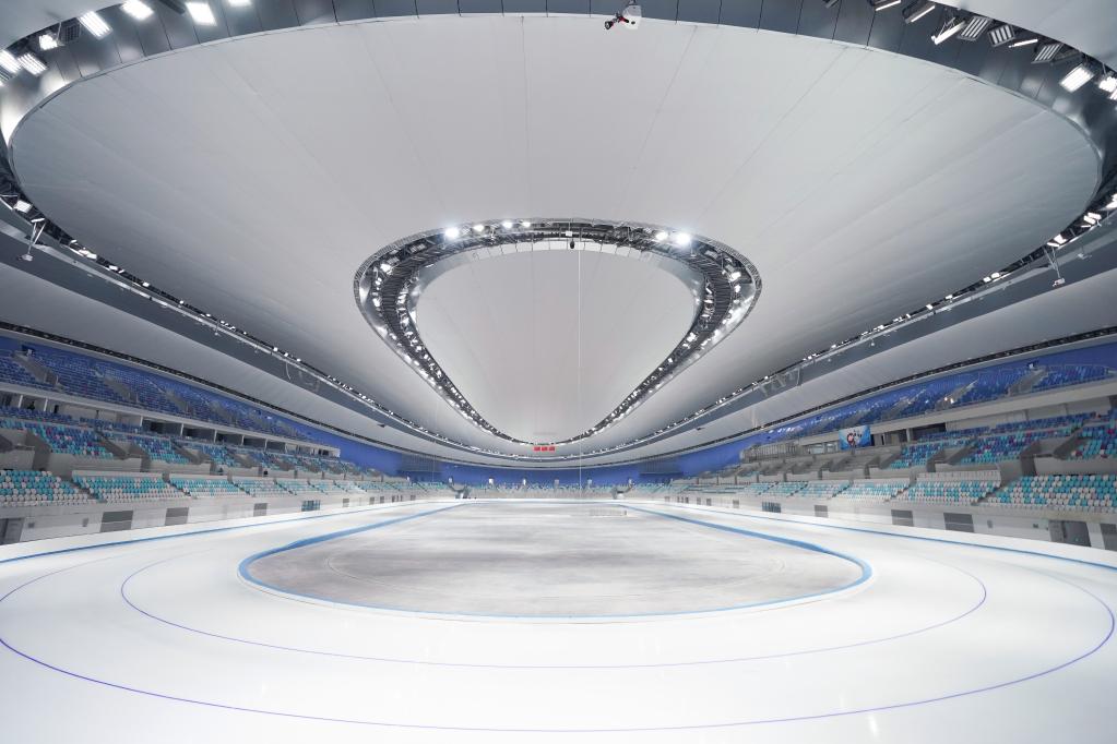 這是2021年1月22日拍攝的首次制冰完成后的國(guó)家速滑館內(nèi)景。新華社記者 鞠煥宗 攝
