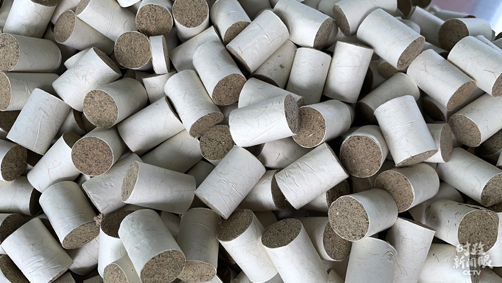 △艾絨加工成艾條(總臺(tái)央視記者王鵬飛拍攝)