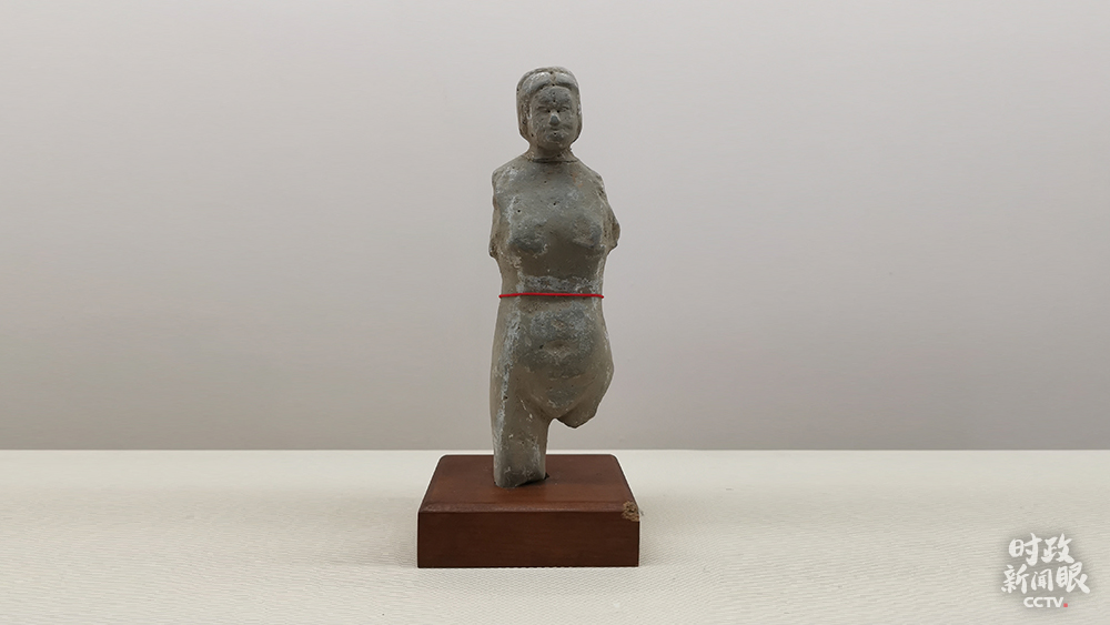 △東漢針灸女陶人。身高24厘米,胸寬7厘米。陶人造型質(zhì)樸,渾身遍布排列成行的針灸穴位,具有極高的學(xué)術(shù)價(jià)值。(總臺(tái)央視記者馬超拍攝)