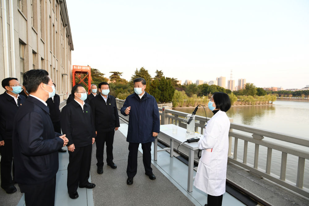 ↑2020年11月13日,習(xí)近平在江蘇省揚(yáng)州市考察調(diào)研。這是習(xí)近平在江都水利樞紐,了解南水北調(diào)東線工程規(guī)劃建設(shè)和樞紐運(yùn)行等情況。