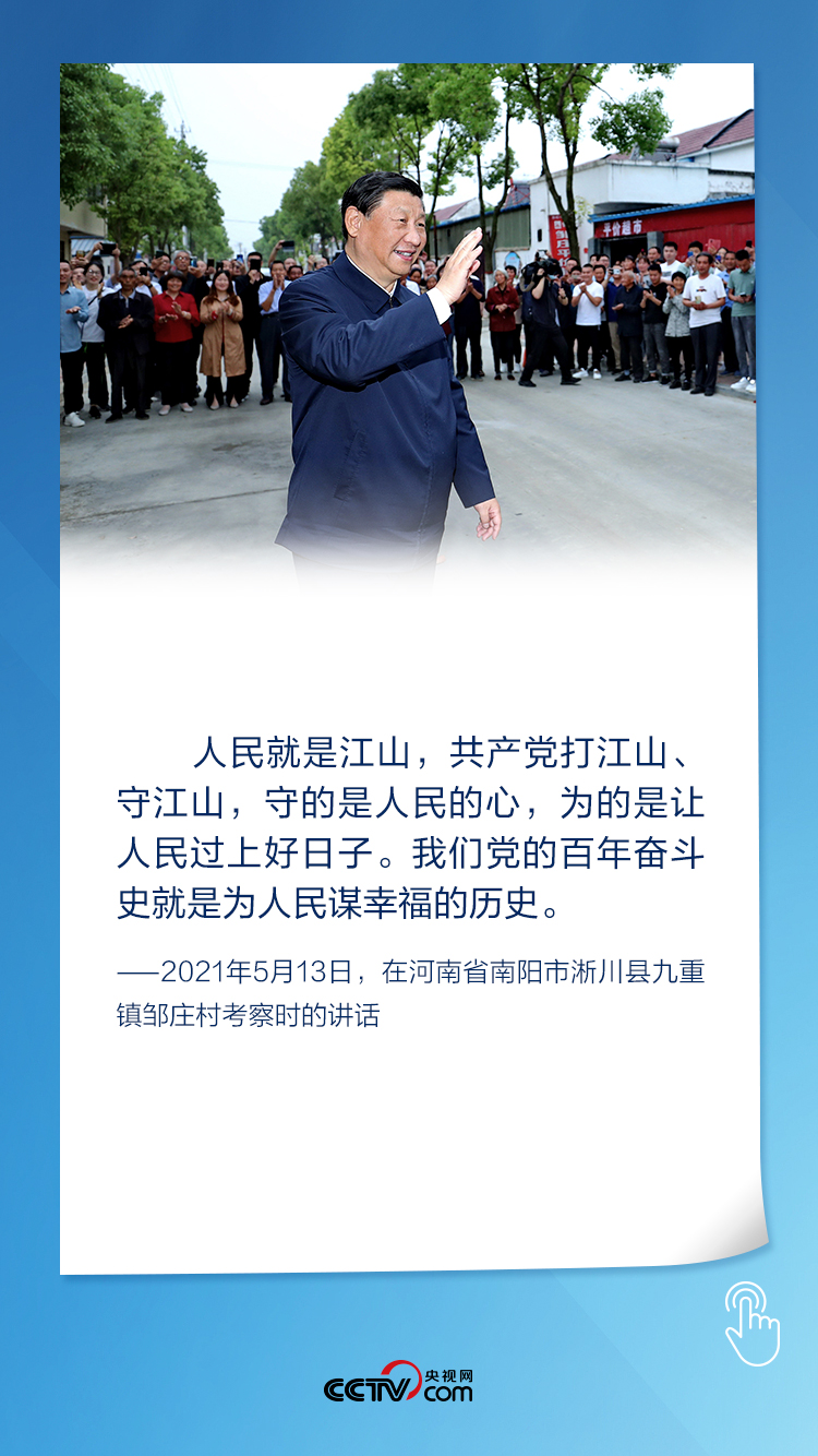 河南省南陽市、淅川縣陶岔渠首樞紐工程、九重鎮(zhèn)鄒莊村……一個個關(guān)聯(lián)地點(diǎn),留下了總書記今年第六次國內(nèi)考察的足跡??吹揭泼翊遴l(xiāng)親們的日子越過越好,總書記衷心感謝無私奉獻(xiàn)的移民群眾,深情地說:“人民就是江山,共產(chǎn)黨打江山、守江山,守的是人民的心,為的是讓人民過上好日子。”