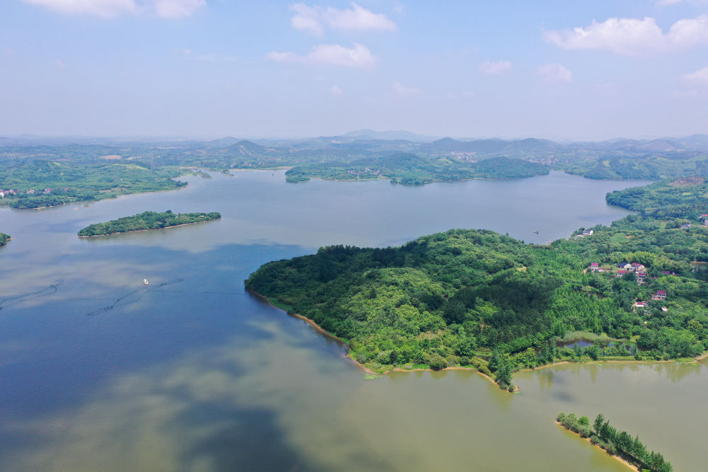 2021年5月17日拍攝的江蘇溧陽天目湖景色(無人機(jī)照片)。新華社記者 季春鵬 攝