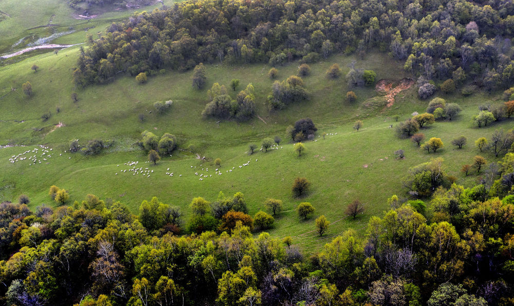 2021年5月4日拍攝的陜西隴縣關(guān)山草原旅游風(fēng)景區(qū)一角(無人機(jī)照片)。新華社記者 陶明 攝