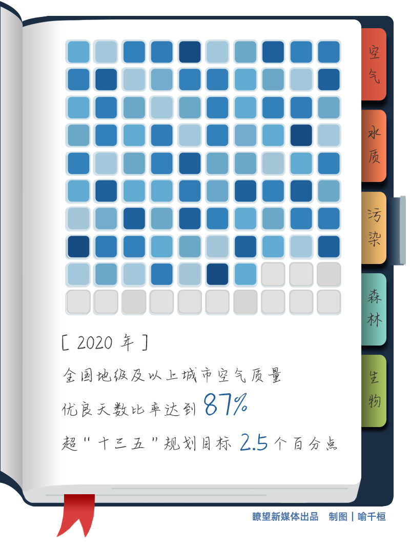 霧霾更少,空氣更清新。2020年全國地級及以上城市空氣質量優(yōu)良天數(shù)比率達到87%,超過“十三五”規(guī)劃目標2.5個百分點;PM2.5未達標地級及以上城市年均濃度達到37微克/立方米,累計降低28.8%,超過“十三五”規(guī)劃目標10.8個百分點。