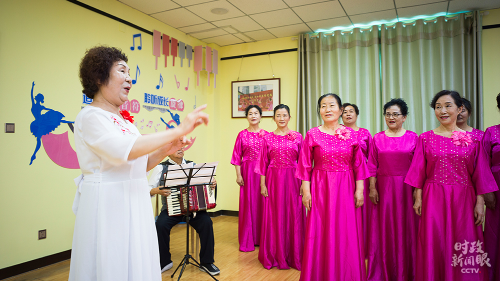 △社區(qū)合唱團(tuán)正在排練,總指揮是66歲的社區(qū)居民王紅梅。(總臺央視記者彭漢明拍攝)