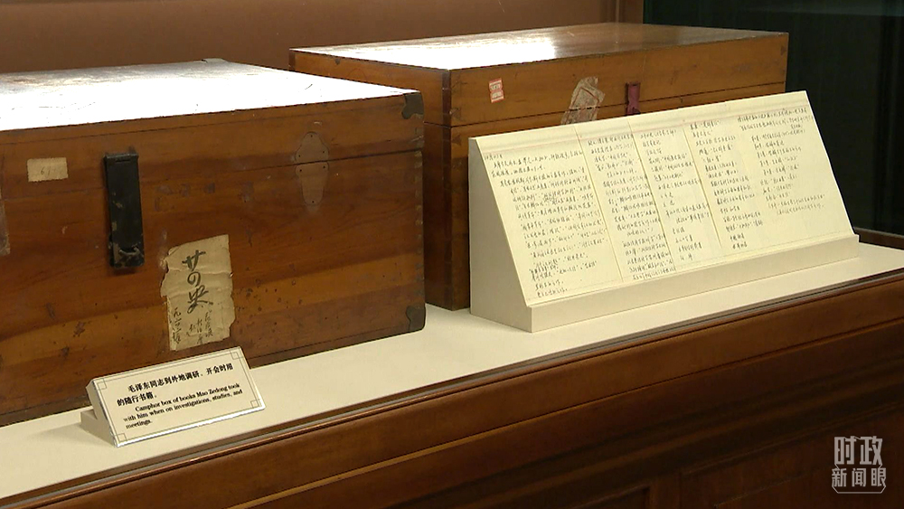 △這是毛澤東到外地調(diào)研、開(kāi)會(huì)時(shí)用的隨行書(shū)箱,現(xiàn)陳列在豐澤園毛澤東同志故居。(總臺(tái)央視記者石偉明拍攝)