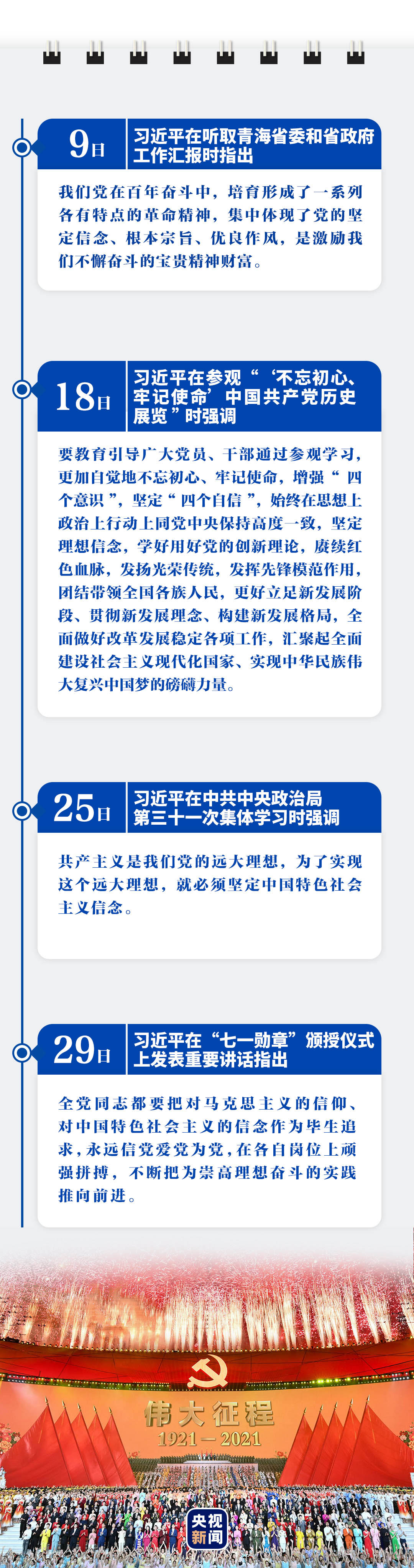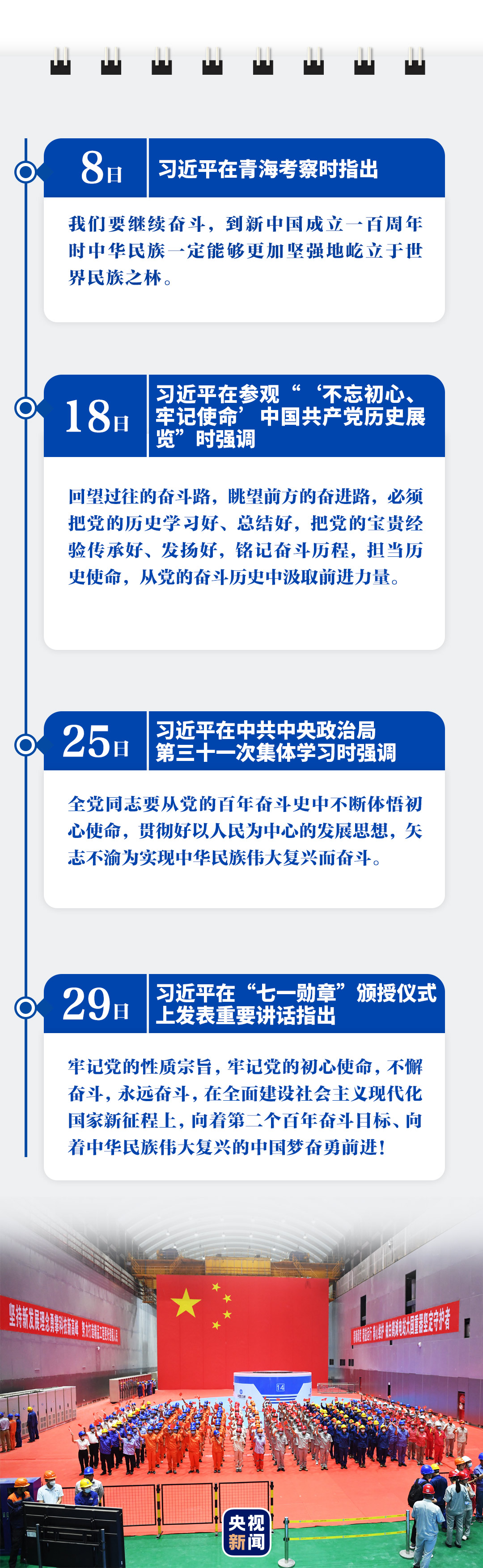 赴中國共產黨歷史展覽館,參觀“‘不忘初心、牢記使命’中國共產黨歷史展覽”,并帶領黨員領導同志重溫入黨誓詞;赴北大紅樓參觀主題展覽、到豐澤園毛澤東同志故居參觀瞻仰,主持中央政治局第三十一次集體學習;觀看慶祝中國共產黨成立100周年文藝演出《偉大征程》;向“七一勛章”獲得者頒授勛章,并發(fā)表重要講話……習近平總書記6月的很多重要活動,都與慶祝建黨百年有關。