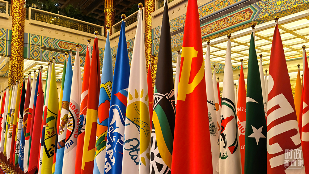 △會場上各個(gè)政黨黨旗旗陣。(總臺央視記者石丞拍攝)