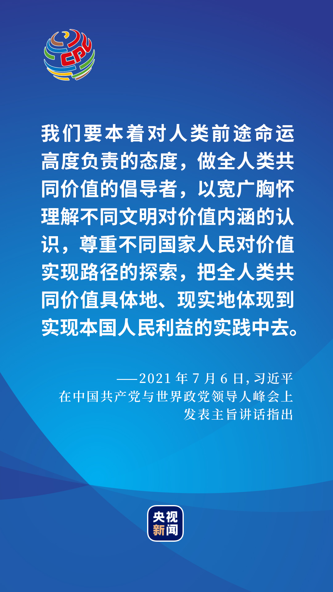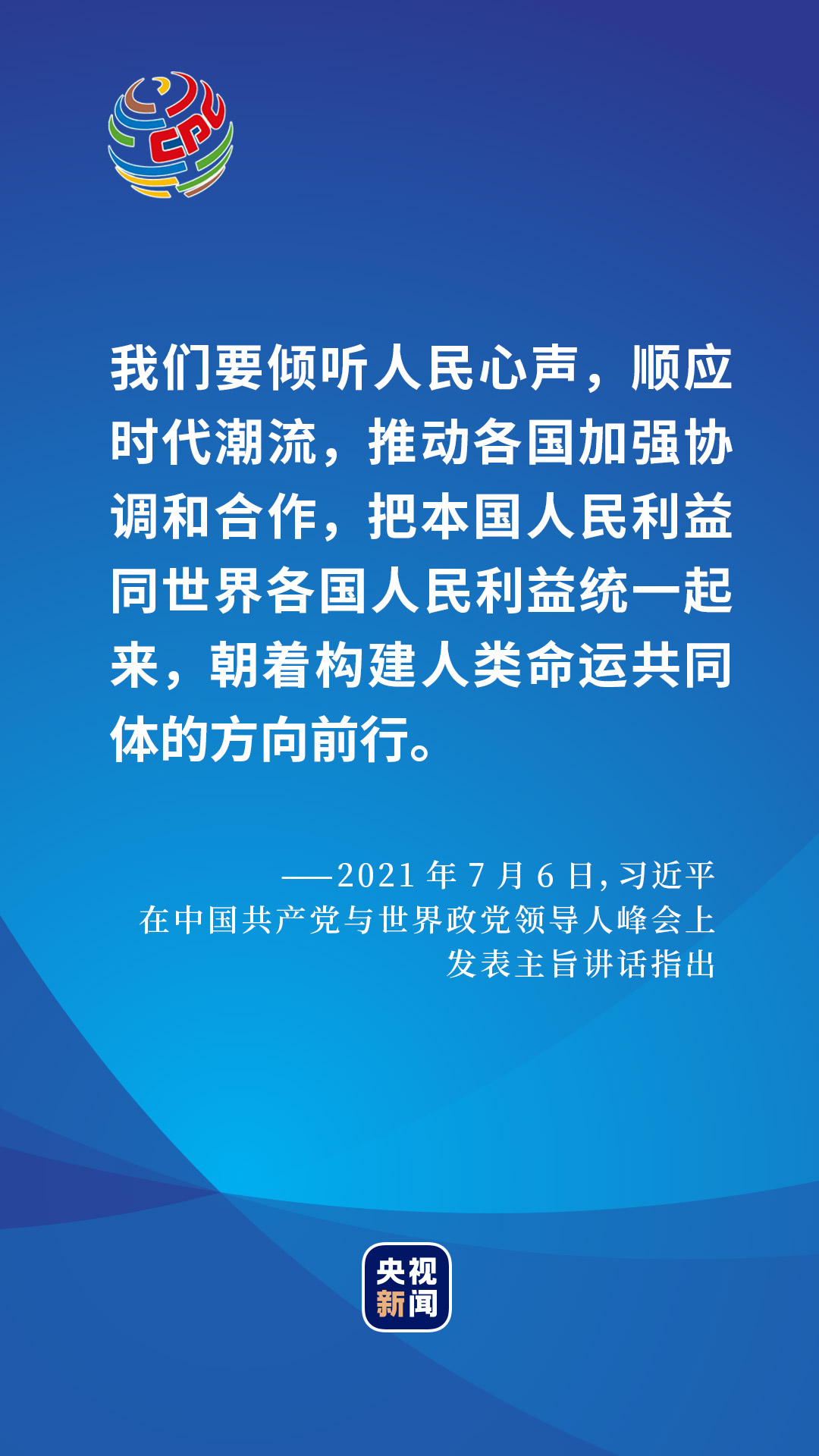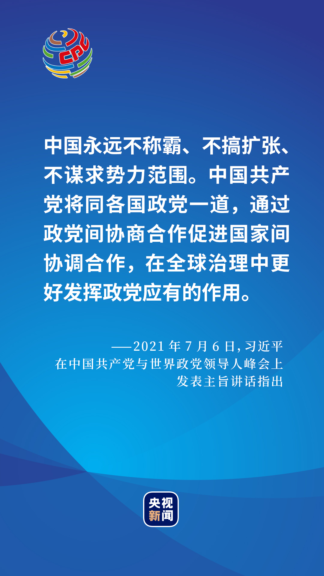 2021年7月6日,在中國共產黨與世界政黨領導人峰會上,習近平總書記給出了一個百年大黨的選擇和主張。