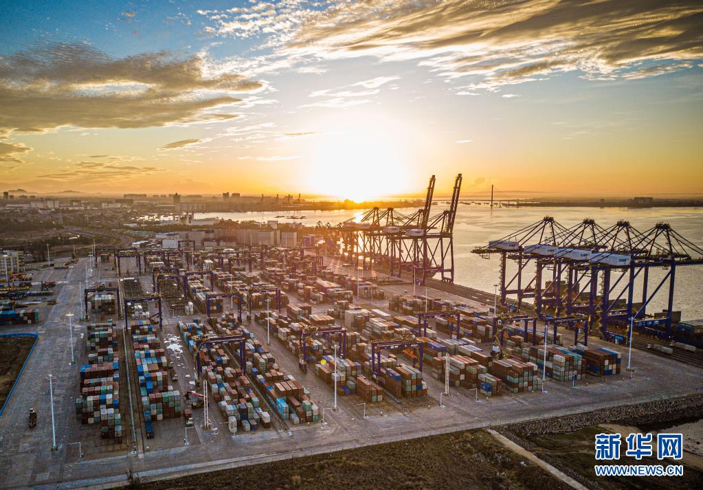 這是5月26日在海南洋浦經(jīng)濟(jì)開發(fā)區(qū)拍攝的洋浦國際集裝箱碼頭(無人機(jī)照片)。新華社記者 蒲曉旭 攝