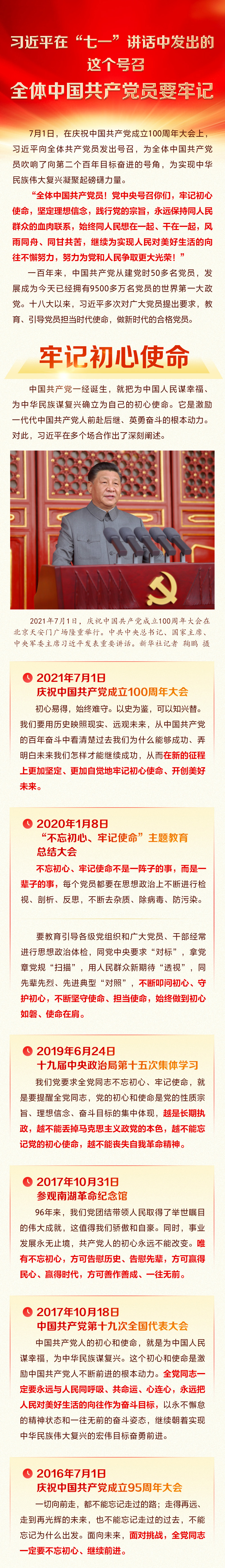 習(xí)近平在“七一”講話中發(fā)出的這個號召 全體中國共產(chǎn)黨員要牢記